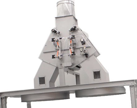 Что касается предварительного разрыхлителя, он также включает в себя длинный горизонтальный конвейер из ПВХ, называемый поперечным конвейером, для сбора волокон, сбрасываемых тюкоразрыхлителем, и подачи в предварительный разрыхлитель. Волокна в разрыхлителе после вскрытия направляются в смесительную машину с помощью нагнетательного вентилятора.