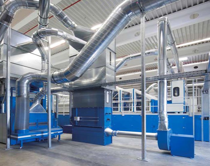 Весь процесс производства нетканых материалов в основном связан с волокнами. Волокна подаются на соответствующие машины и преобразуются в желаемую ткань с точки зрения применения. Процессу помогают трубы или воздуховоды, чтобы передать волокна следующему процессу и обеспечить непрерывный поток.