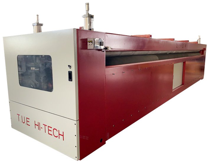 تتكون المعدات من أجزاء الإطار وبكرات الضغط وبكرات الصياغة. اجعل القماش غير المنسوج من آلة ما قبل الإبرة يغير هيكل توزيع الألياف من خلال آلة الصياغة لتسريع سرعة إخراج القماش غير المنسوج.