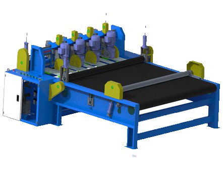 Las cortadoras verticales diseñadas y contadas según el tamaño de la hoja. La máquina está equipada con cilindros neumáticos para garantizar el prensado y un largo transportador de PVC para sujetar la hoja de tela.