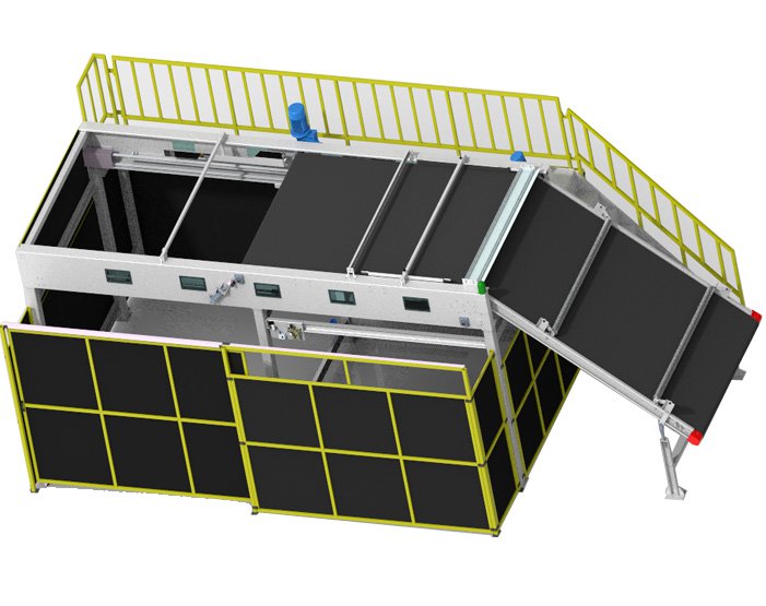 Esta máquina está compuesta principalmente por celosía de transferencia oblicua, celosía de transferencia hacia arriba, carro y elevación.