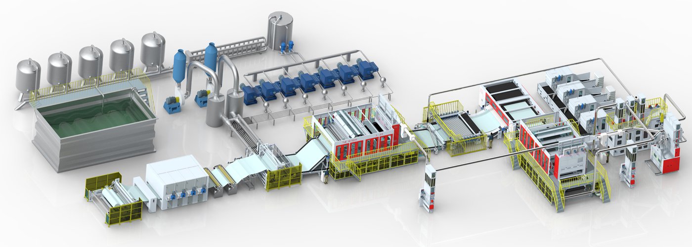 مجموعة واسعة من أنظمة spunlace في تكوينات مباشرة ومتشابكة.