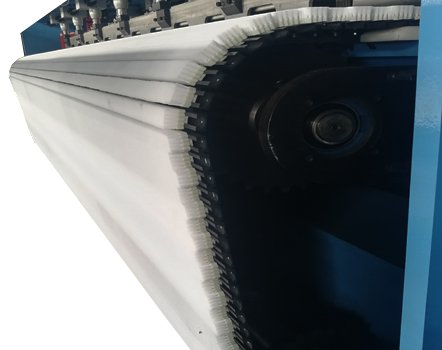 تم تجهيز الفرش بفرشاة قطيفة خاصة بمئزر / شعرية. يتم تثبيتها على قضبان من الألومنيوم وقضبان من الألومنيوم متصلة بأحزمة خاصة. يتحرك مئزر الفرشاة على حزام قابل للتعديل يساعد في التنظيف المستمر ويساعد بشكل جانبي في اختراق الإبر. وهي مفيدة في إنتاج سجاد قطيفة للسيارات / المعارض.