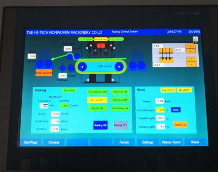 The Nonwoven velour machine is for giving the velour finish in the fabric. The machine consists of brushes which is crucial in getting the fur effect. The machine is one of the parts of Nonwoven. The structure of the machine is heavily designed with aluminum plates for brush holdings. The shaft in the machine has been with the most balanced technology. The proportion of the needle penetration and the stroke length is being controlled by the PLC and confirming the precise velouring.